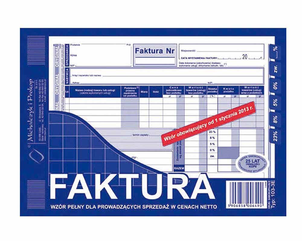 - wykonany z surowców najwyższej jakości na papierze offsetowym lub samokopiującym