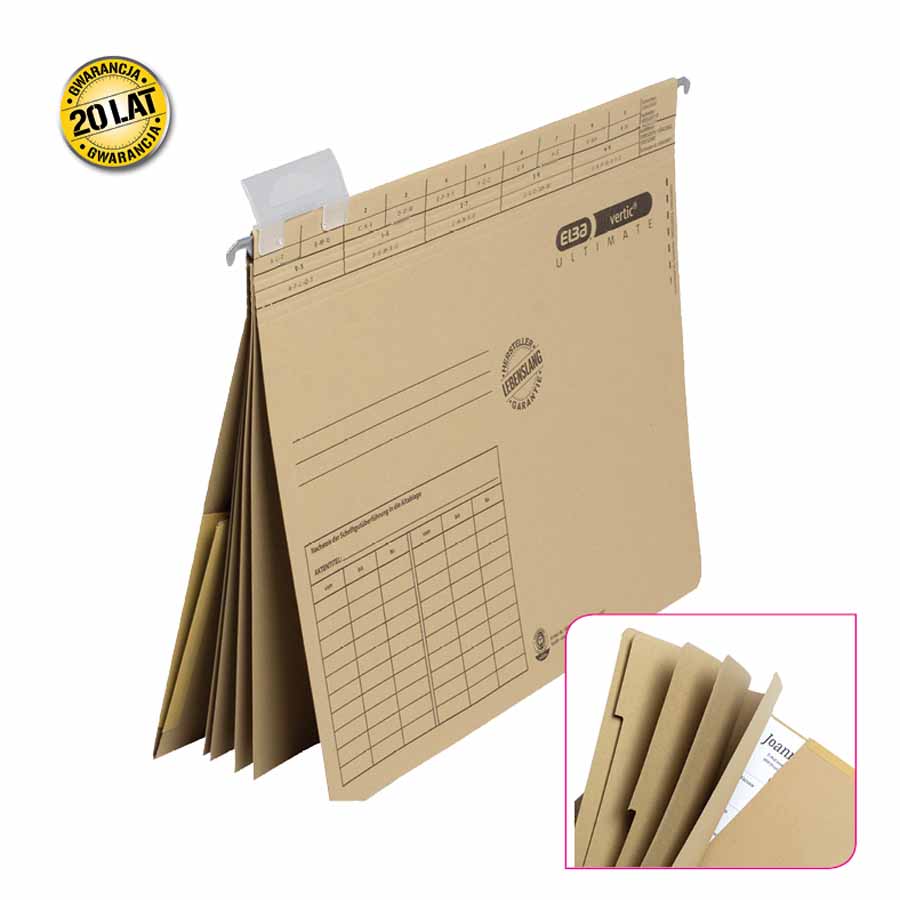 Wyposażona w metalowy uchwyt zawieszkowy, teczka gwarantuje solidność i wytrzymałość. Boczne ograniczniki z płótna skutecznie zabezpieczają dokumenty przed przypadkowym wysunięciem, a pojemność teczki umożliwia przechowywanie aż do 400 kartek formatu A4.