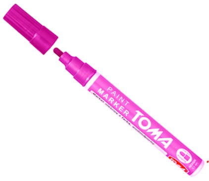 Marker wyposażony jest w okrągłą fibrową końcówkę, która zapewnia równomierne i precyzyjne oznaczenia. Końcówka pompująca pozwala na płynne pisanie, eliminując przerwy w pracy i gwarantując komfort użytkowania.