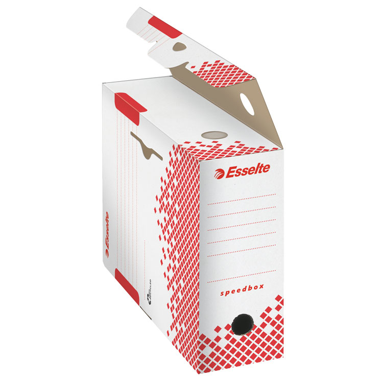 Pudło archiwizacyjne DONAU wyróżnia się nowoczesnym designem, który pozwala na ustawienie zarówno na krótszym, jak i dłuższym boku, co zwiększa elastyczność organizacji przestrzeni biurowej. Posiada 5 ścian opisowych, co ułatwia identyfikację zawartości i poprawia organizację w biurze.