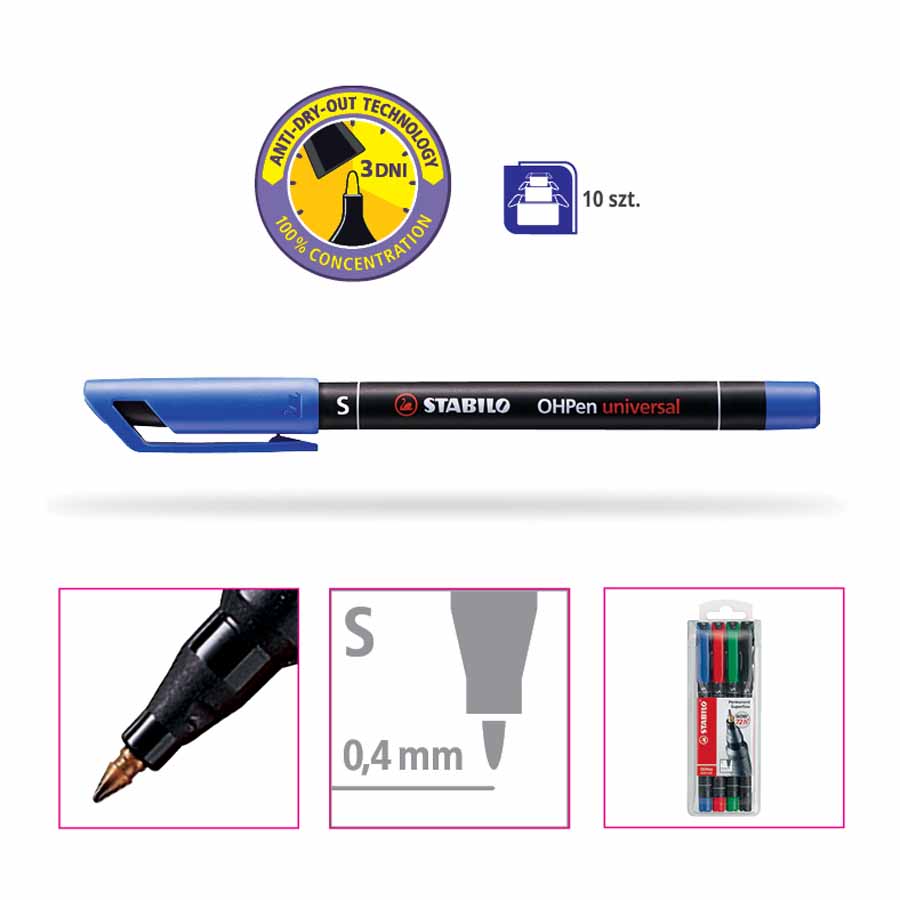 Foliopis STABILO OHPen M jest niezwykle wszechstronny, idealny do pisania na szkle, torebkach foliowych, etykietach, zdjęciach, błyszczącym papierze, płytach CD oraz zdjęciach rentgenowskich. Jego uniwersalność sprawia, że jest niezastąpiony w wielu sytuacjach.