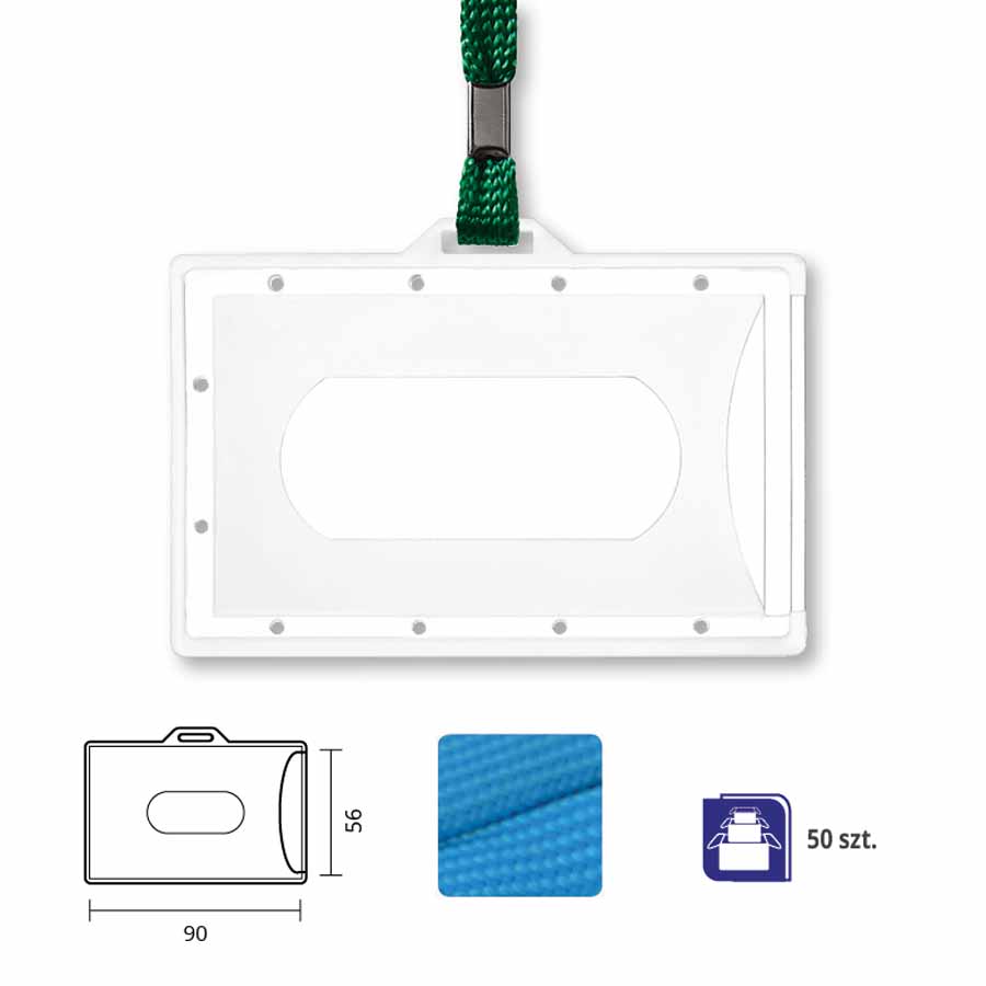 Holder z czarną taśmą dostępny jest w opakowaniach po 50 sztuk, co czyni go doskonałym wyborem dla firm, organizacji oraz organizatorów wydarzeń. Niezależnie od skali Twoich potrzeb, to praktyczne rozwiązanie zapewni odpowiednią ilość holderów, aby sprostać wymaganiom każdego eventu.