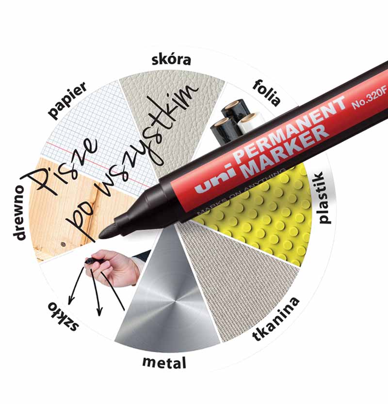Marker UNI 320 jest idealny do znakowania różnorodnych powierzchni. Sprawdza się doskonale na metalu, drewnie, tkaninach, papierze, szkle, skórze, folii i plastiku. Jego uniwersalność czyni go niezastąpionym narzędziem w każdym otoczeniu.