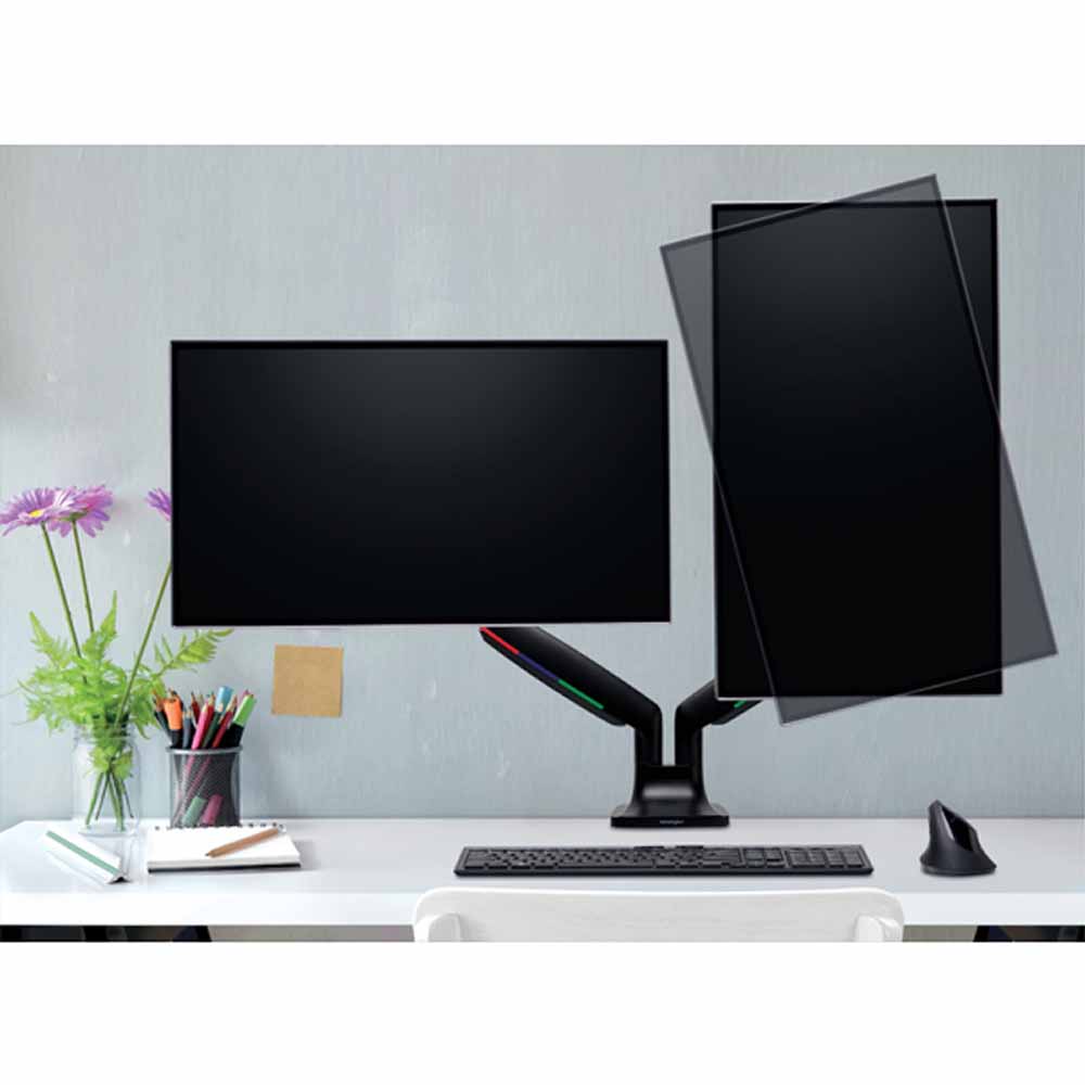 - wbudowana sprężyna gazowa i regulacja naciągu przeciwwagi umożliwiają bezwysiłkowe i bezproblemowe ustawienie wysokości, odległości i kąta nachylenia monitora