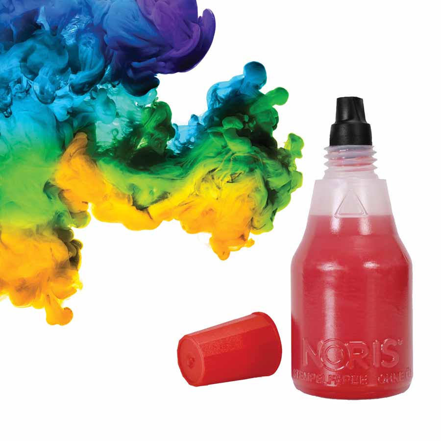 Tusz Noris 110S jest dostępny w buteleczce o pojemności 25 ml, wyposażonej w końcówkę ułatwiającą nasączenie poduszek. Dzięki temu napełnianie poduszek tuszem jest szybkie i bezproblemowe. Nakrętka w kolorze tuszu pozwala na łatwą identyfikację i wygodne przechowywanie.