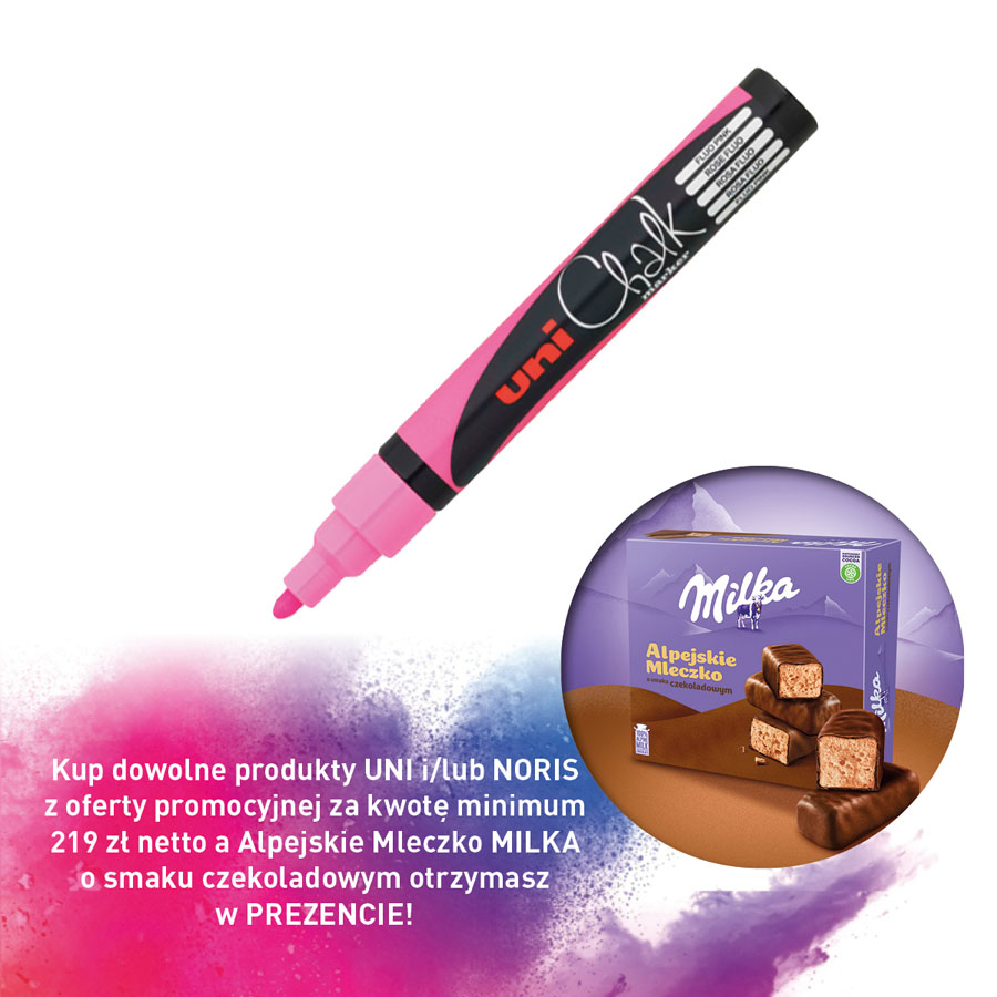 jm.: szt Kup dowolne produkty UNI i/lub NORIS z oferty promocyjnej za kwotę minimum 219 zł netto a Alpejskie Mleczko MILKA o smaku czekoladowym otrzymasz w PREZENCIE!