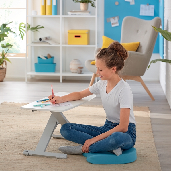 - Wspomagana pneumatycznie regulacja wysokości umożliwia łatwe i bezproblemowe przełączanie między pozycją siedzącą i stojącą