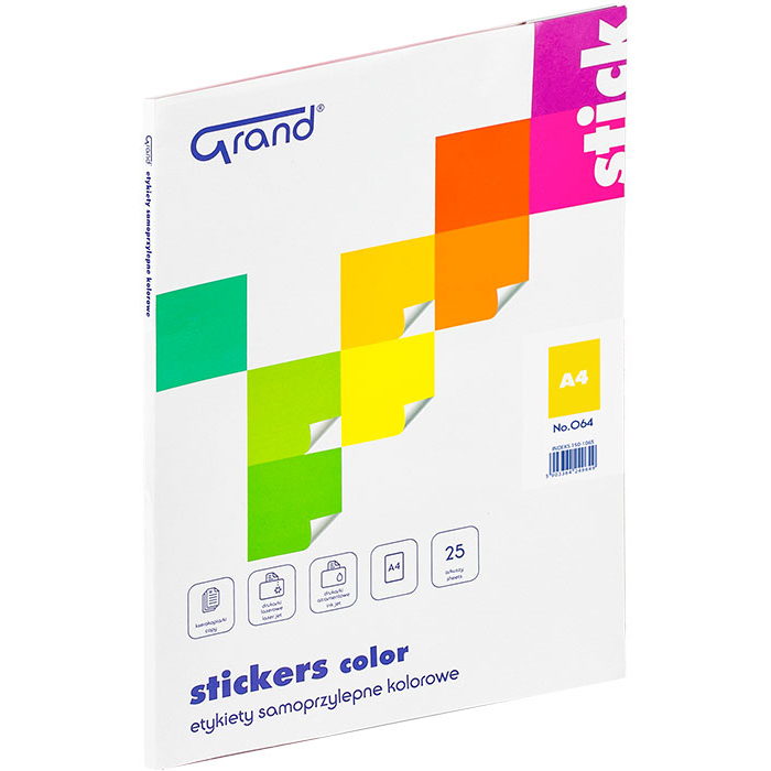 klasyczne etykiety samoprzylepne, odpowiednie do drukarek laserowych, atramentowych i kserokopiarek rozmiar etykiety: 63,5x72mm liczba etykiet na arkuszu: 12 gramatura: front 70gsm, podkład 75gsm białość: 148 ± 5 CIE QCT - Quatro Clean Technology - ochronne pole wzdłuż krawędzi etykiety, które zapobiega odkładaniu się kleju na mechanizmie drukarki produkt wyprodukowany z materiałów certyfikowanych FSC. Certyfikat FSC promuje gospodarkę leśną opartą o najwyższe światowe standardy w dziedzinie ochrony przyrody i gwarantuje legalność pochodzenia surowca 100 arkuszy w opakowaniu kolor: biały