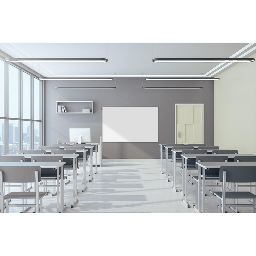 Możliwość instalacji zarówno w pionie, jak i w poziomie pozwala dopasować tablicę do każdej przestrzeni. System szynowy gwarantuje bezpieczne użytkowanie, a podkładki korkowe pełnią funkcję odbojników, zapewniając idealne wypoziomowanie oraz komfort pisania.