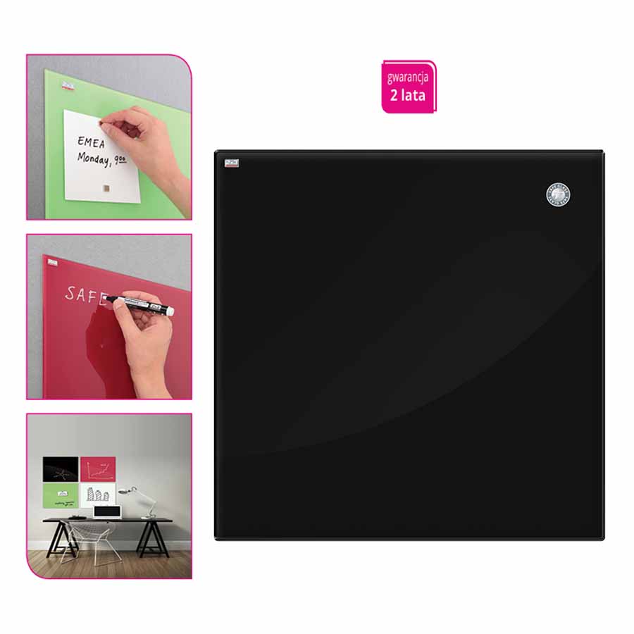 Tablica szklana MemoBe to eleganckie i praktyczne rozwiązanie do biura, szkoły czy domowego gabinetu. Wykonana z wysokiej jakości hartowanego szkła biodegradowalnego o grubości 4 mm, łączy estetykę z trwałością. Posiada właściwości suchościeralne i magnetyczne, co umożliwia wygodne pisanie oraz przypinanie notatek za pomocą magnesów. Gładka tafla ułatwia szybkie czyszczenie i usuwanie markerów suchościeralnych bez smug i plam.