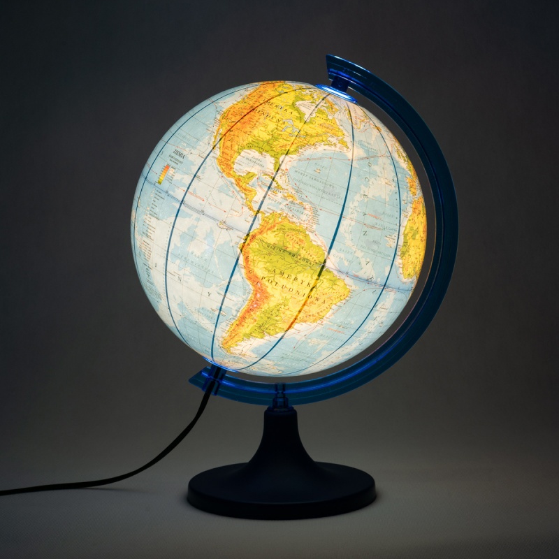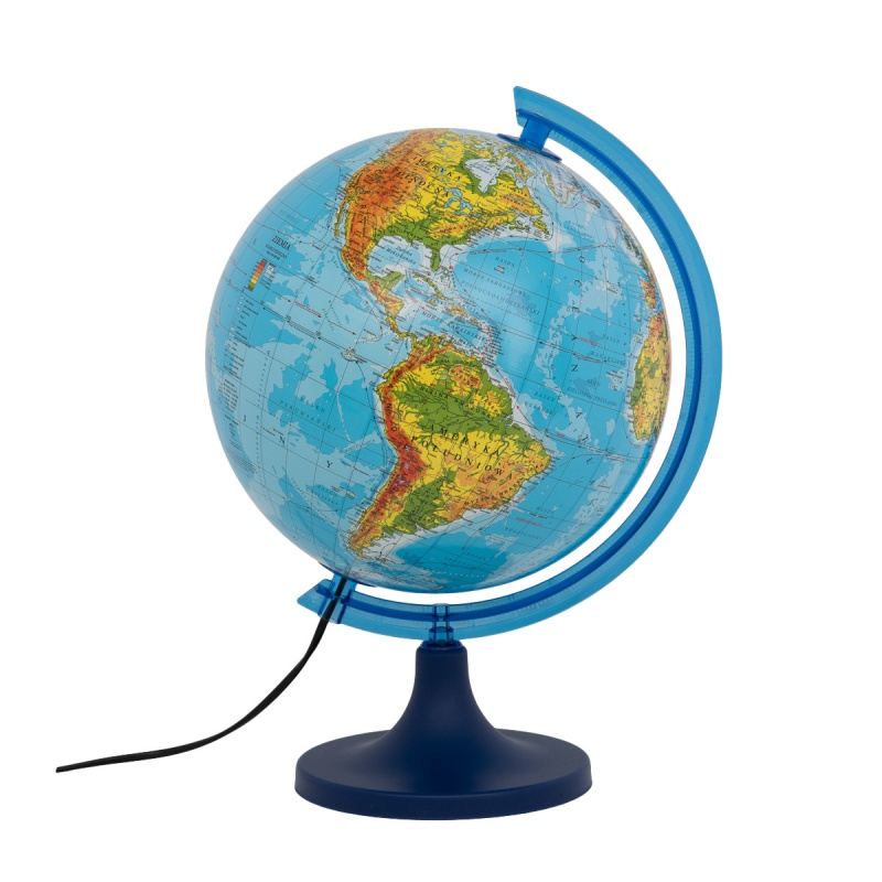 globus z mapą fizyczną w polskiej wersji językowej estetycznie wykonany, z wysokiej jakości nadrukiem i precyzyjnie odwzorowaną mapą znakomita pomoc dydaktyczna oraz ładny element wystroju wnętrza dzięki swojemu klasycznemu wyglądowi podstawa: plastikowa cięciwa: plastikowa wysokość: 38 cm średnica kuli: 250 mm podświetlenie: tak opakowanie: pudełko kartonowe kolor podstawy: niebieski